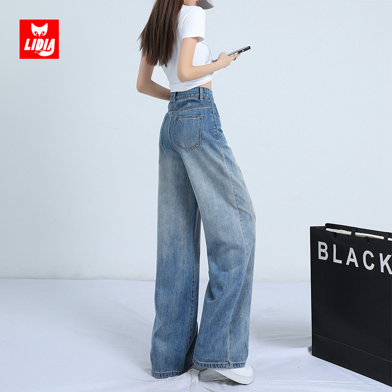 复古蓝高腰牛仔裤 子 女直筒宽松2025秋冬梨形身材显瘦垂感拖地长裤