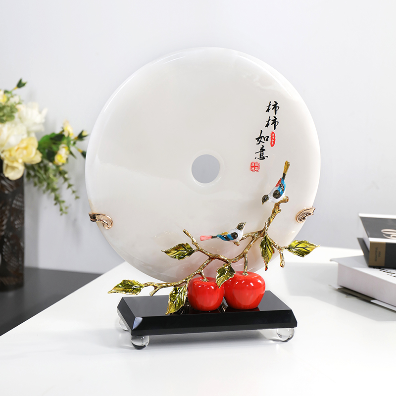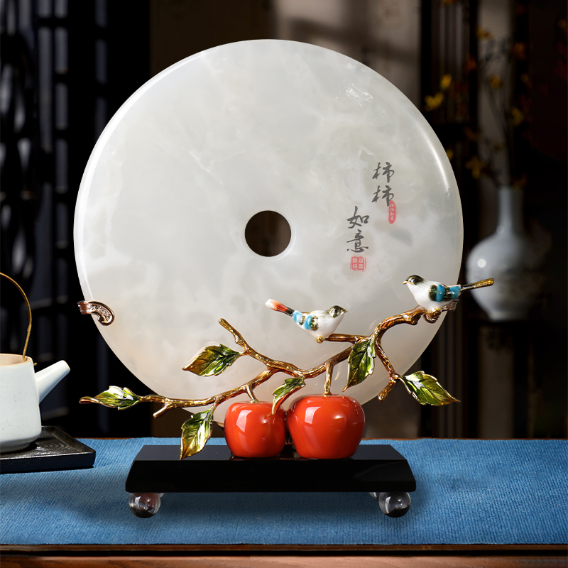 新中式 玉石平安扣摆件柿柿如意珐琅彩工艺轻奢高端家用乔迁送礼