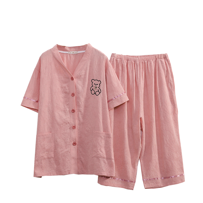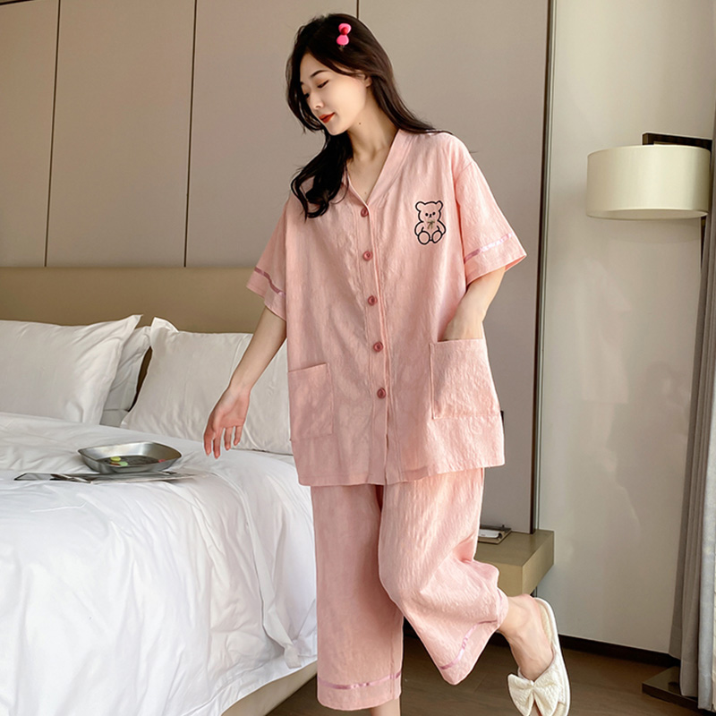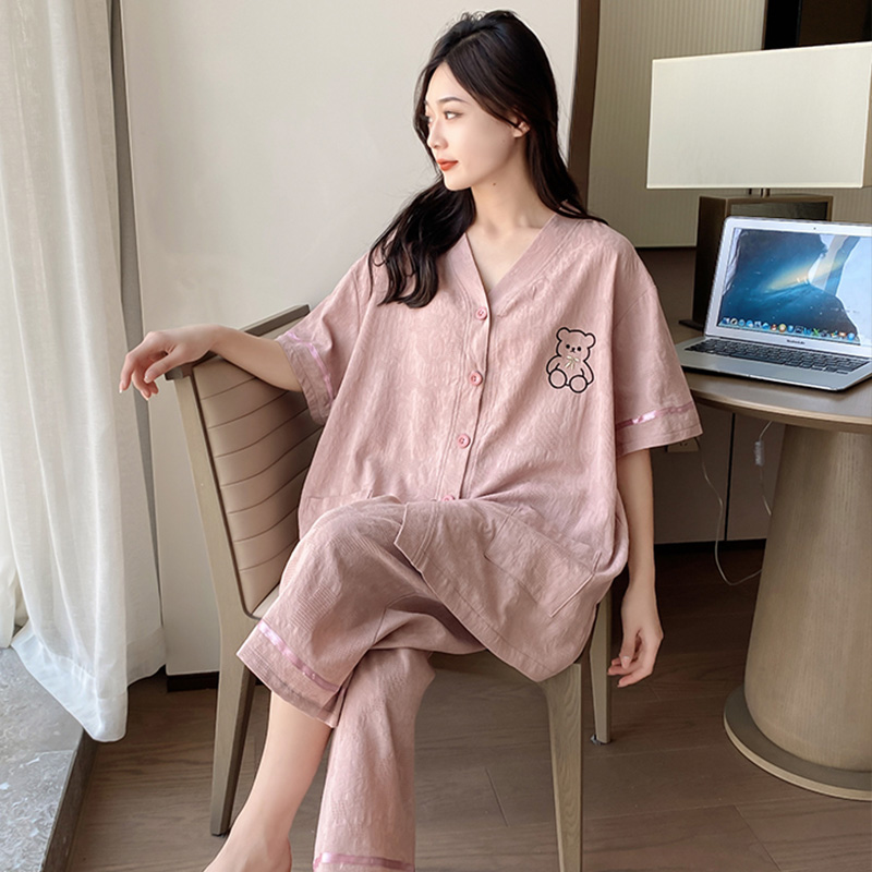 纯棉睡衣女200斤夏季 家居服胖mm薄款 加大短袖 宽松七分裤 套装 大码
