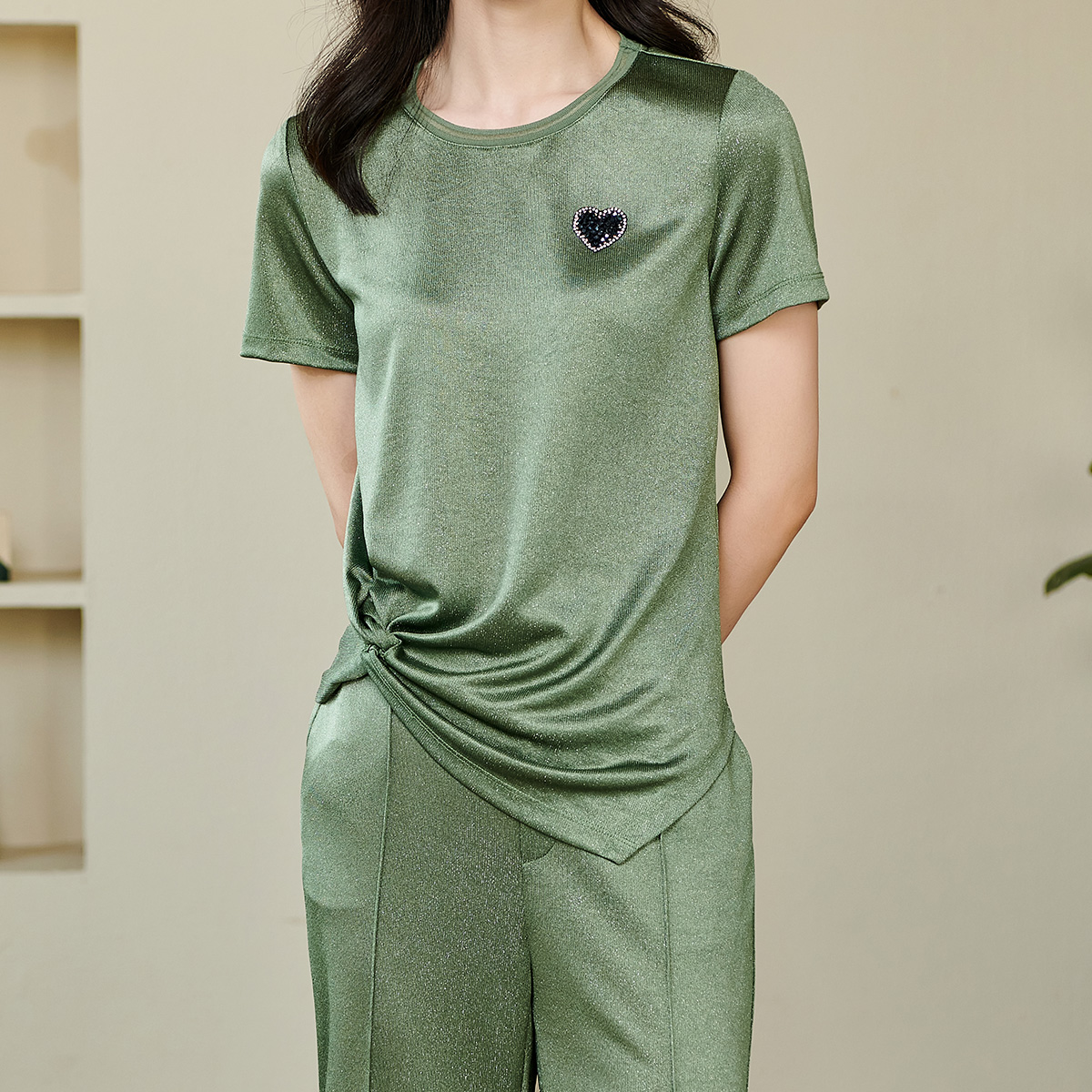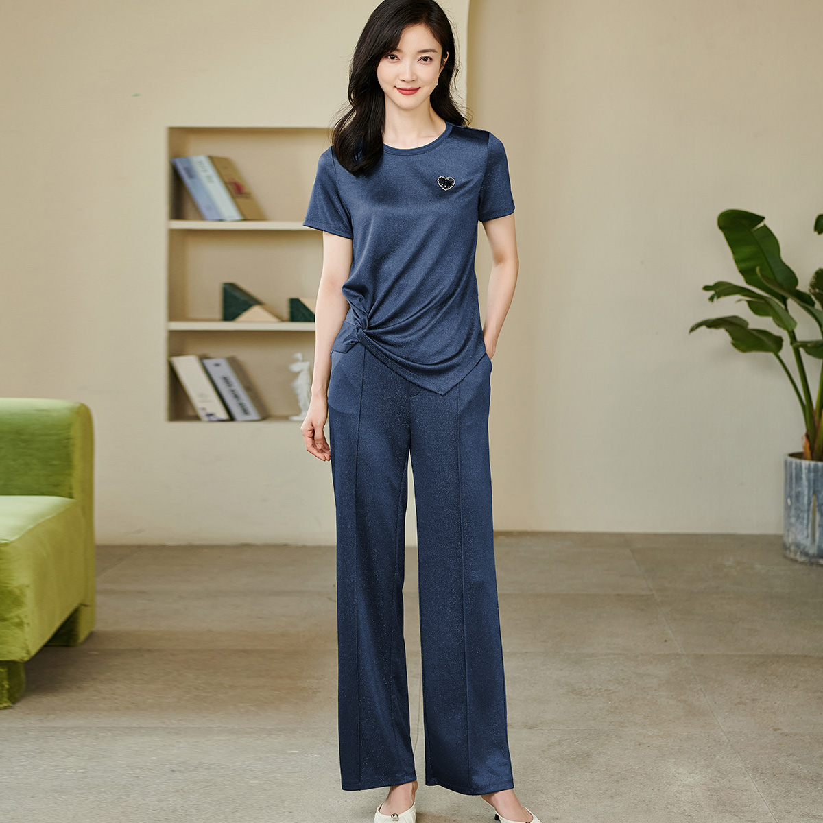 两件套装 高端设计感爽滑醋酸T恤上衣长裤 1241 新款 米思阳2023夏季