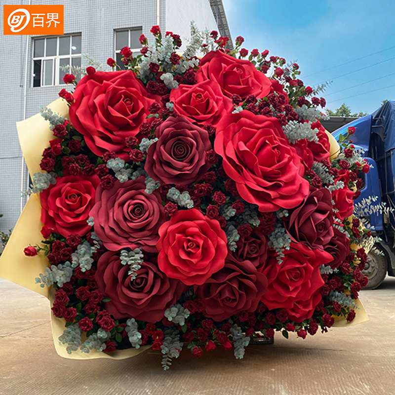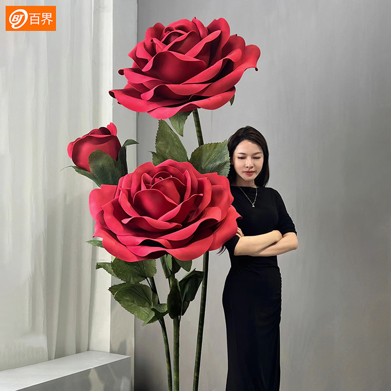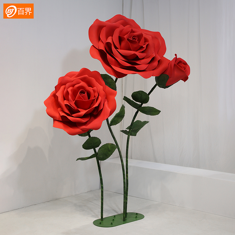 百界巨大型手工立体纸艺玫瑰花EVA仿真商场橱窗陈列装 饰场景布置