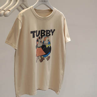 体恤潮学生上衣服 设计感小众半袖 日系港风纯棉卡通短袖 t恤女夏季