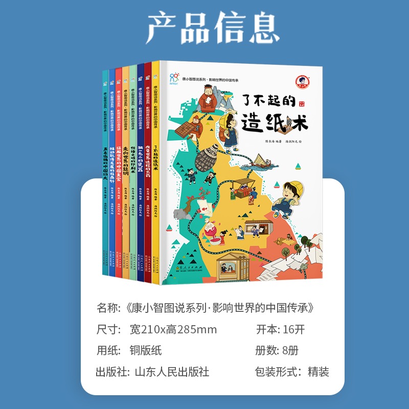 中国传承全8册康小智图说系列了不起 火药声名远扬 造纸术走向世界 印刷术改变世界进程 中国功夫 丝绸传播文明 影响世界
