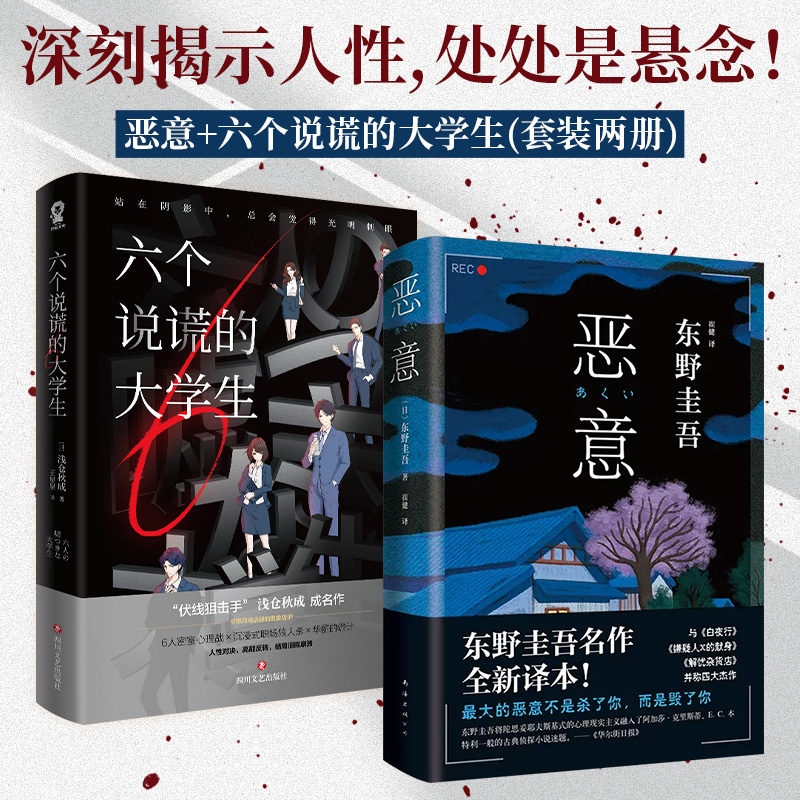 东野圭吾浅仓秋成著日本悬疑推理小说畅销正版 恶意 2册 大学生套装 书籍高口碑 六个说谎