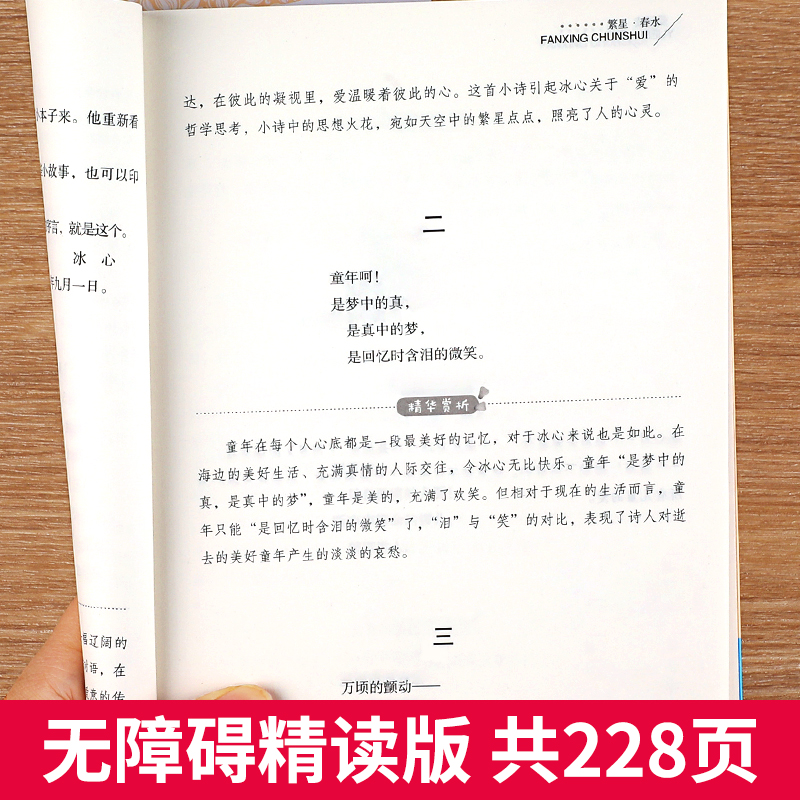 小学生课外阅读书籍繁星.春水作品三部曲现代诗 繁星春水正版 课外书三年级四年级至六年级 青少年版 冰心儿童文学全集