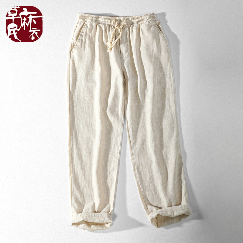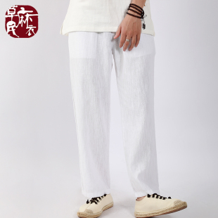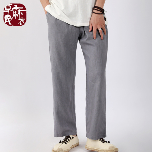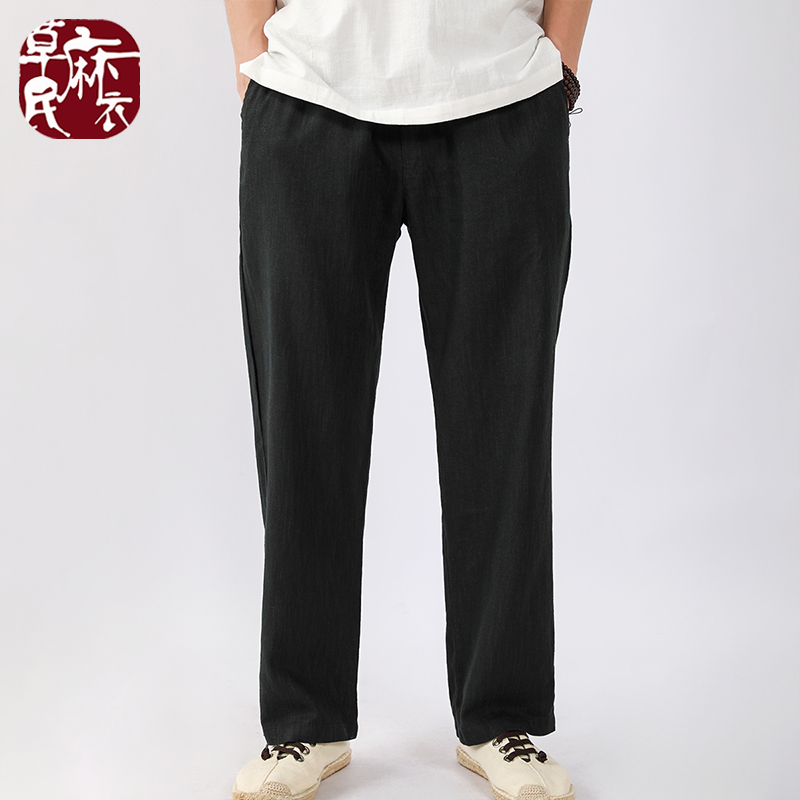 棉麻直筒中国风复古长裤 草民麻衣宽松大码 亚麻男裤 垂感新款 休闲裤