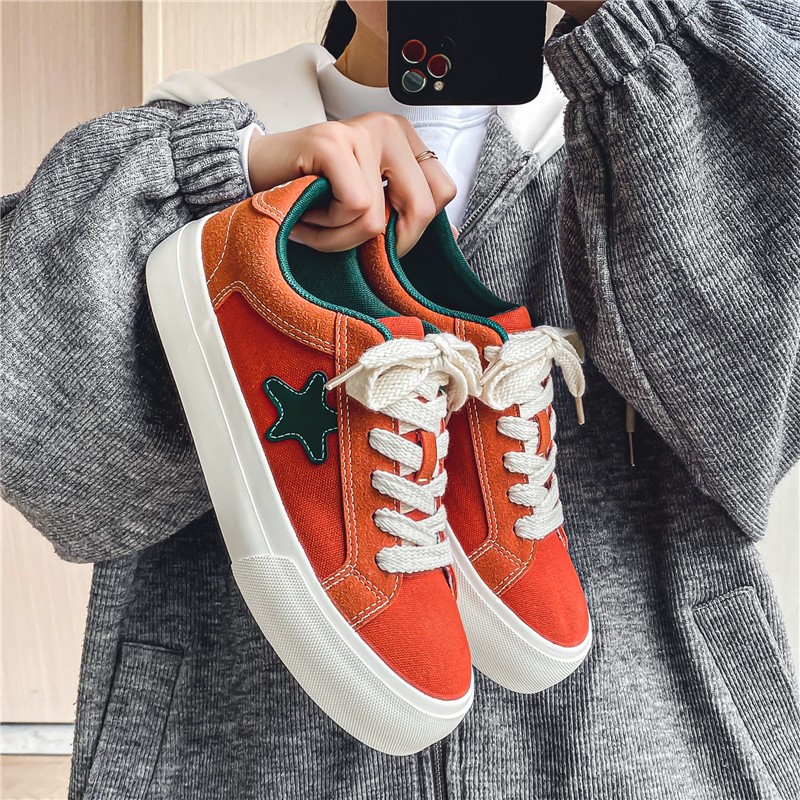 秋季 运动厚底潮鞋 新款 黑色情侣布鞋 透气低帮百搭休闲板鞋 帆布男鞋