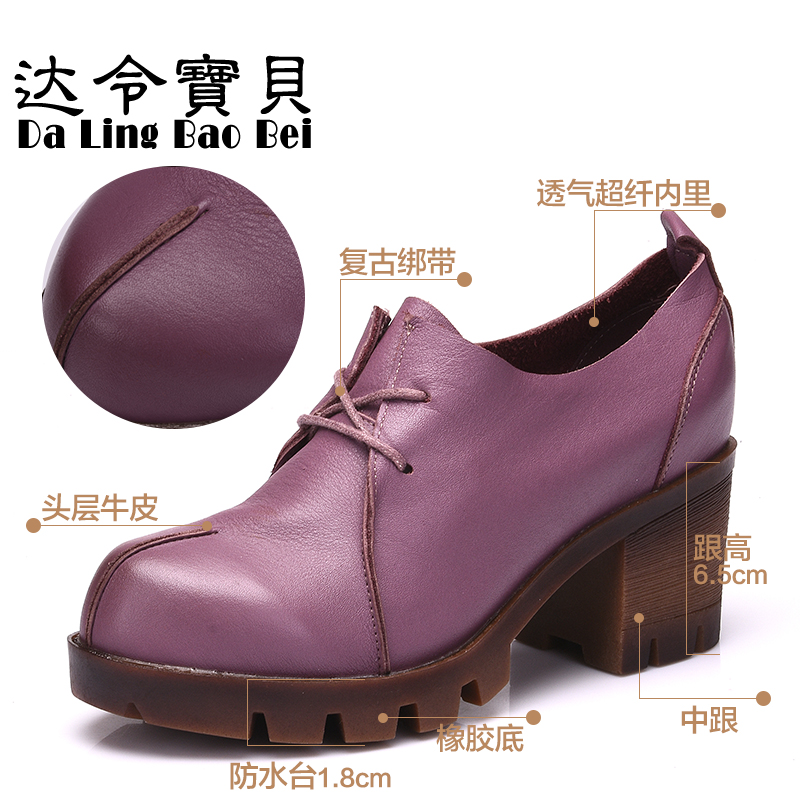 粗跟女牛筋底舒适女鞋 新款 圆头软底中跟 2025春季 真皮系带休闲单鞋