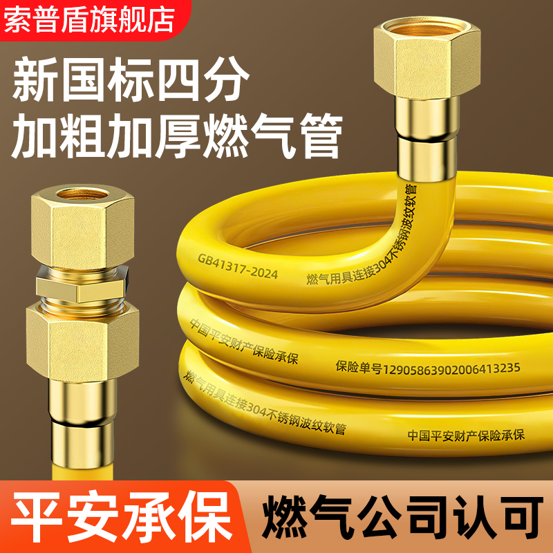 新国标4分燃气管天然气软管不锈钢波纹管家用燃气灶热水器连接管