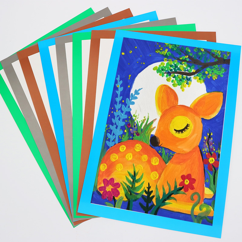 8K边框卡纸带边框长方形彩色卡纸八开儿童幼儿园美术绘画纸黑白画画手绘专用纸裱画裱框镜片卡纸外方内圆白色