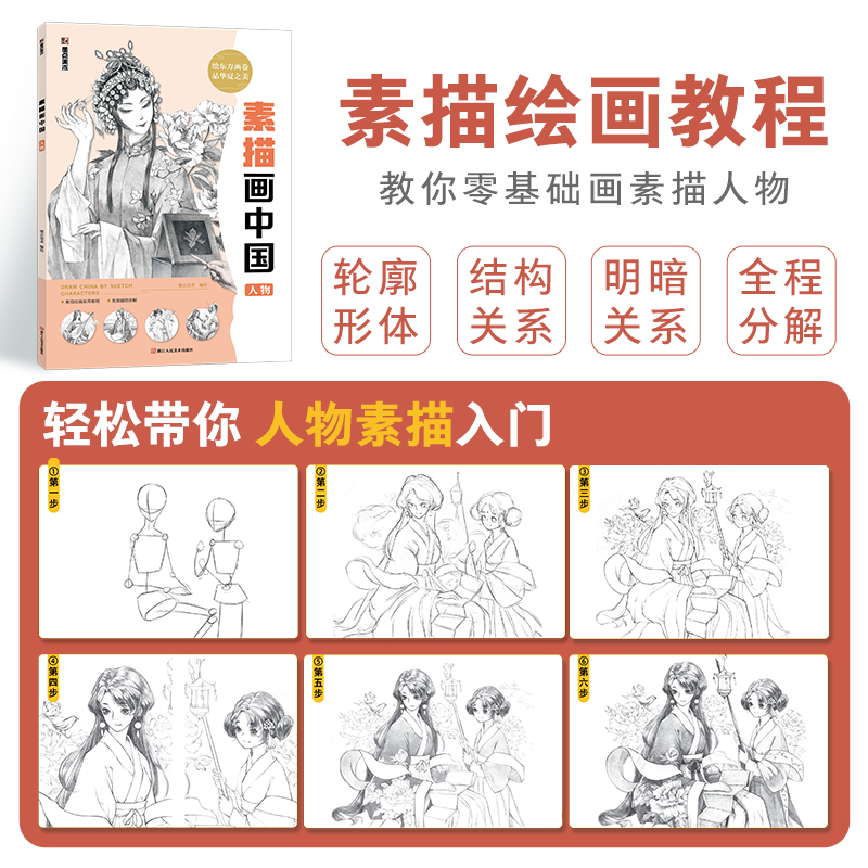 素描画中国人物初学者零基础入门视频讲解丰富案例绘画自学教程书 墨点美术 当当网畅销图书籍 包邮 正版