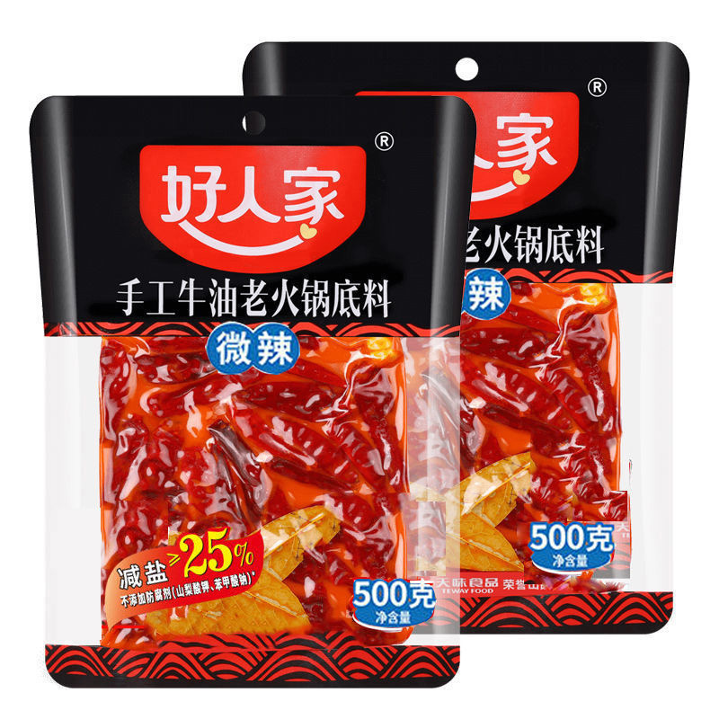 好人家牛油火锅底料500g特麻辣味冒菜煮鱼血旺家用调料 2袋装