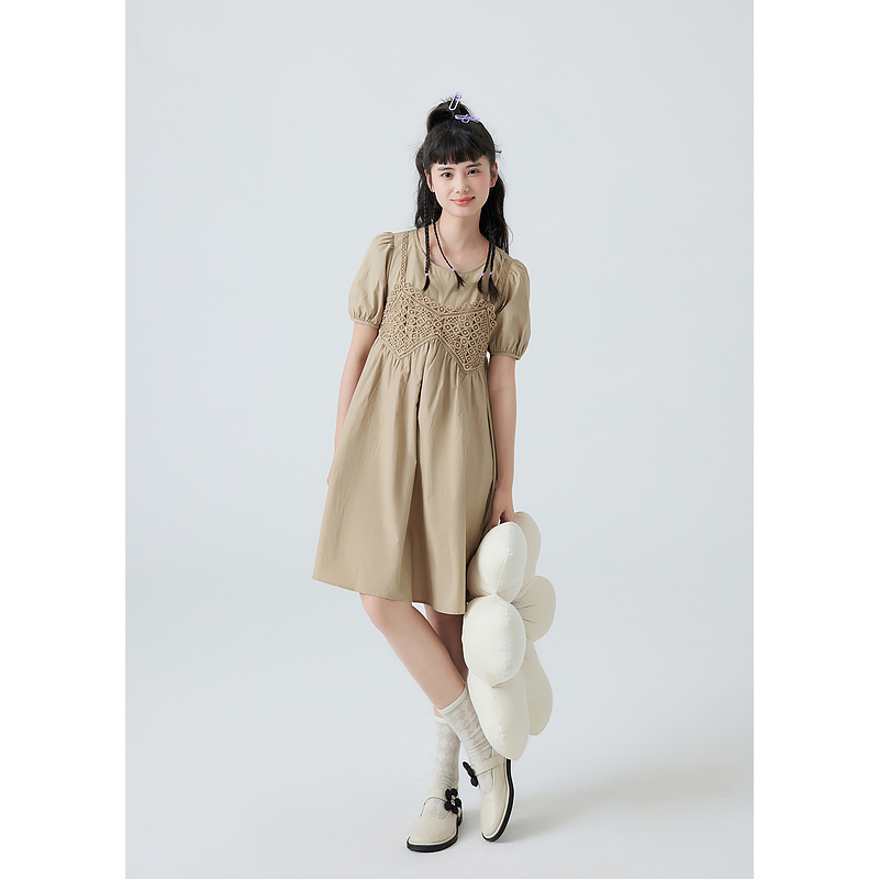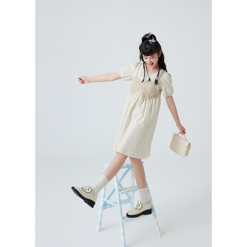 紫涵针织拼接连衣裙假两件裙子女夏季 A字圆领中长裙文艺简约 新款