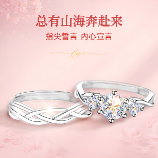 免费刻字情侣戒指999纯银一对情侣款 对戒梅花切钻戒婚戒结婚求婚