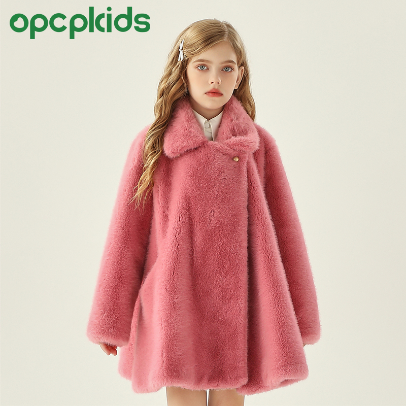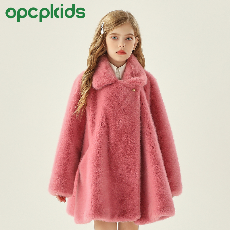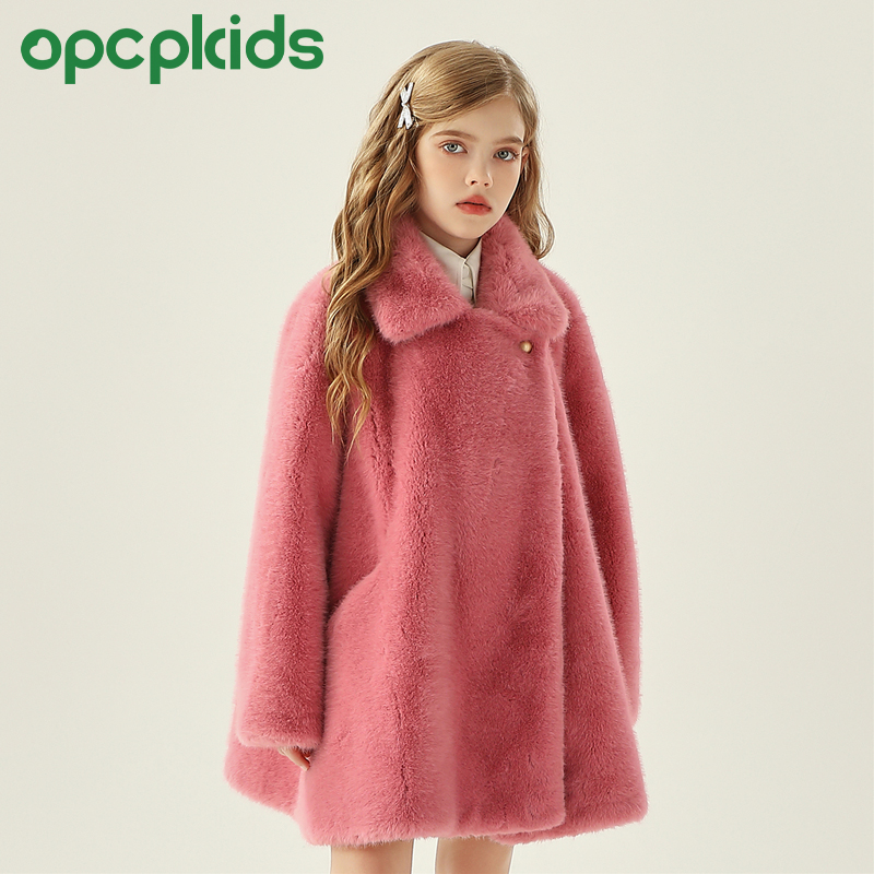OPCP儿童皮草外套2025秋冬新款 女童仿水貂毛小女孩毛毛大衣中长款