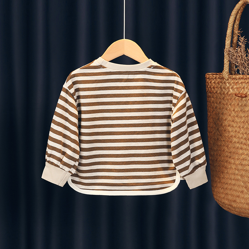 t恤T儿童纯棉休闲上衣 小女孩洋气条纹长袖 女童卫衣春秋款 2025新款