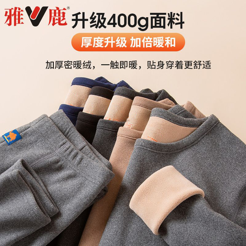 打底棉毛衫 加绒加厚蓄热恒温秋冬款 驼绒保暖内衣套装 雅鹿高档男士