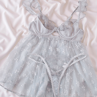 性感睡衣女2025年春夏季 纯欲风冰丝绸带胸垫蕾丝吊带睡裙睡袍 新款