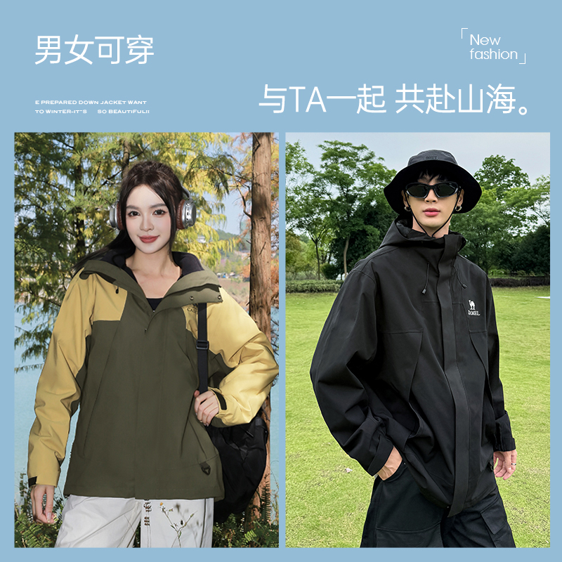 夹克女户外防风防水登山服 外套小个子新款 骆驼女装 三防冲锋衣短款