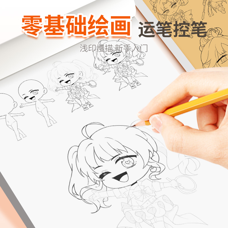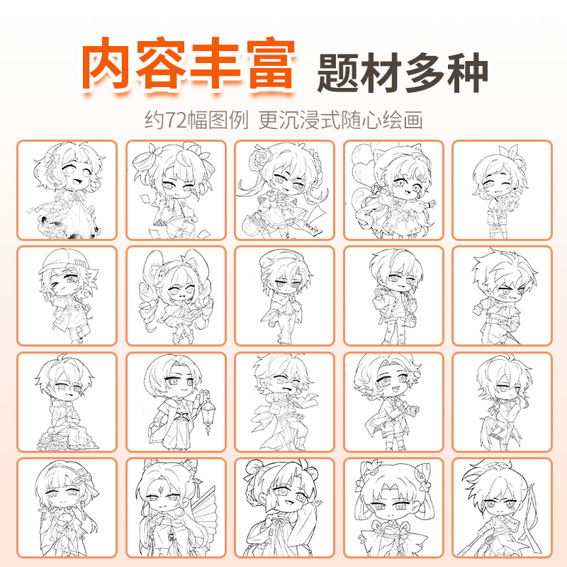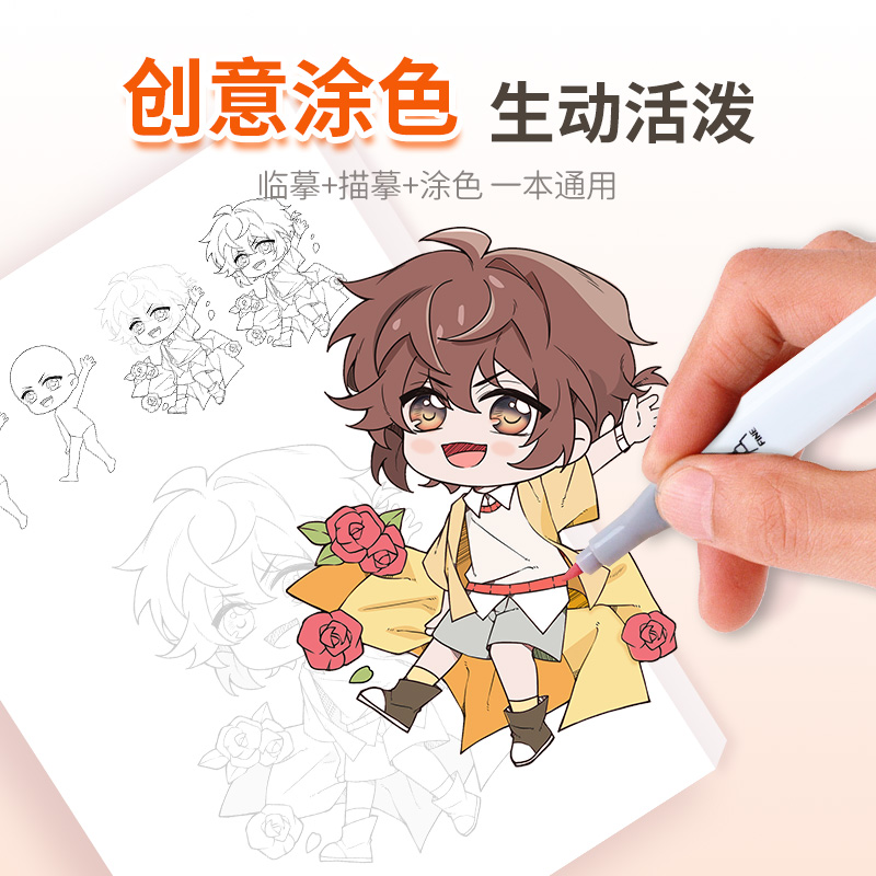 Q版 动漫卡通涂鸦线描图画零基础控笔训练儿童画画涂色简笔画绘画素描临摹画册本 漫画人物入门手绘描摹本套装