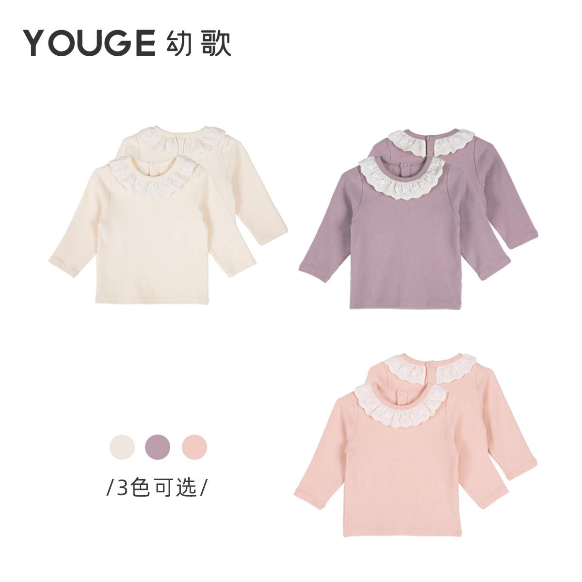婴幼儿秋季 柔弹亲肤长袖 新款 浪漫花边打底衫 上衣潮 法式 YOUGE幼歌