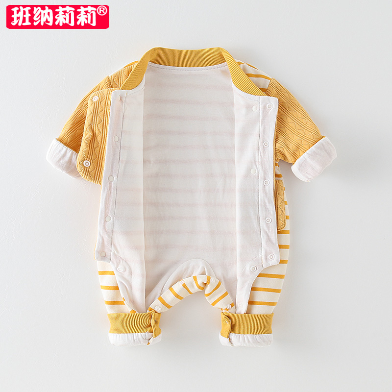 新生婴儿春装 12个月 连体衣6宝宝a类哈衣春秋爬服1双层哈衣9外出3