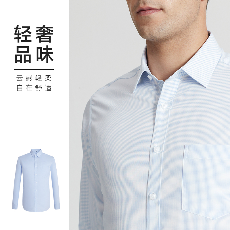 纯棉 小方格长袖 雅涛四季 商务办公高支纱中青年大领男士 衬衫 款