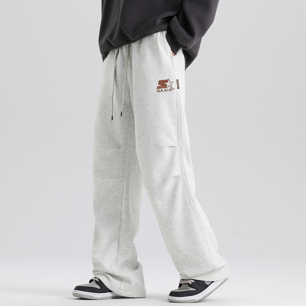 复古水洗宽松直筒阔腿长裤 高街小印花休闲裤 美式 秋冬季 男2024新款
