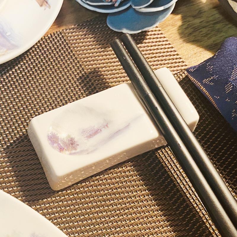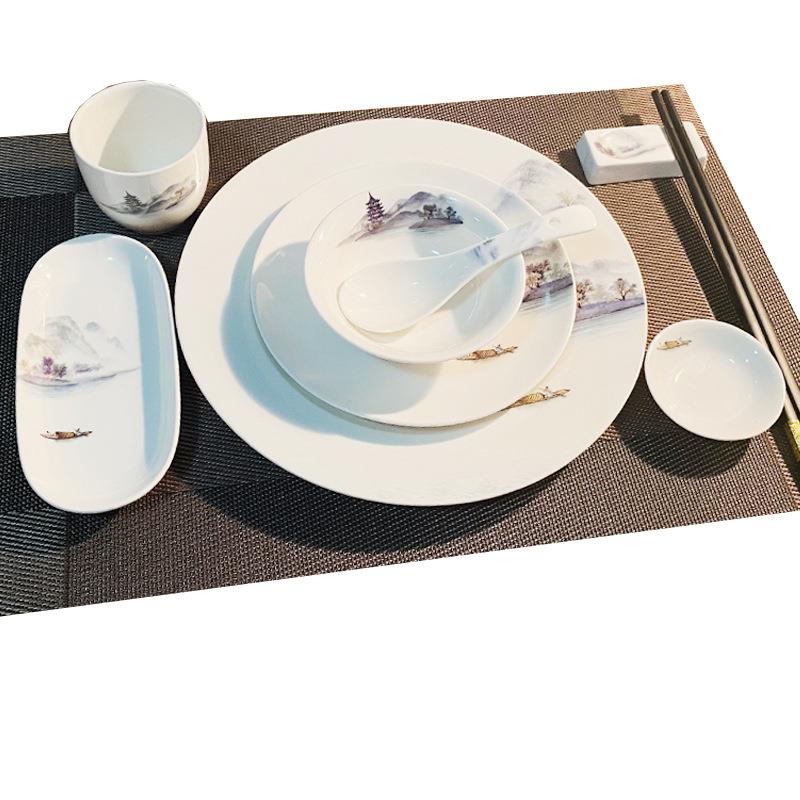 中式 盘子 酒店摆台餐具五件套陶瓷盘碗碟勺杯筷餐厅会所山水画风格