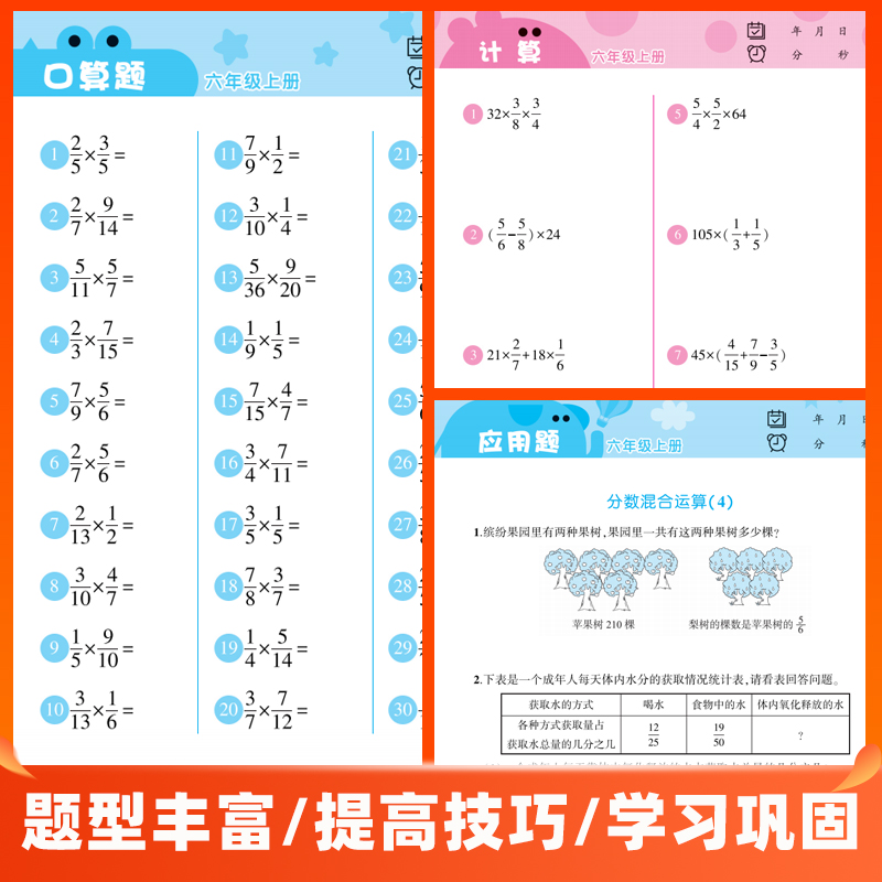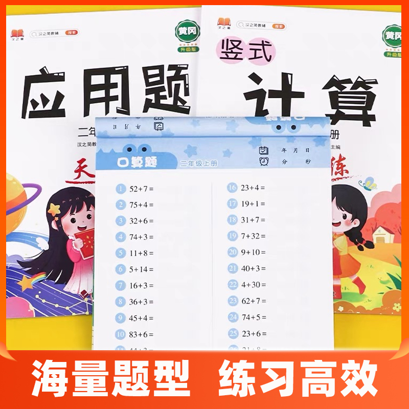 汉知简口算题卡一年级二年级三四五六年级竖式 小学口算速算题同步练习册数学思维计算题天天练 应用题专项强化训练上册全套人教版