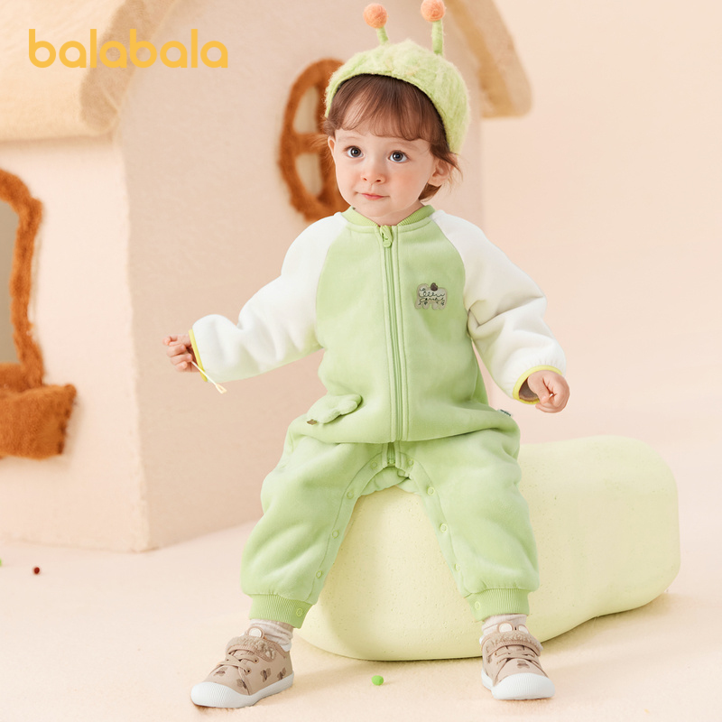 羊羔毛时尚 巴拉巴拉宝宝外出连体衣新款 新生儿哈衣包屁衣冬装