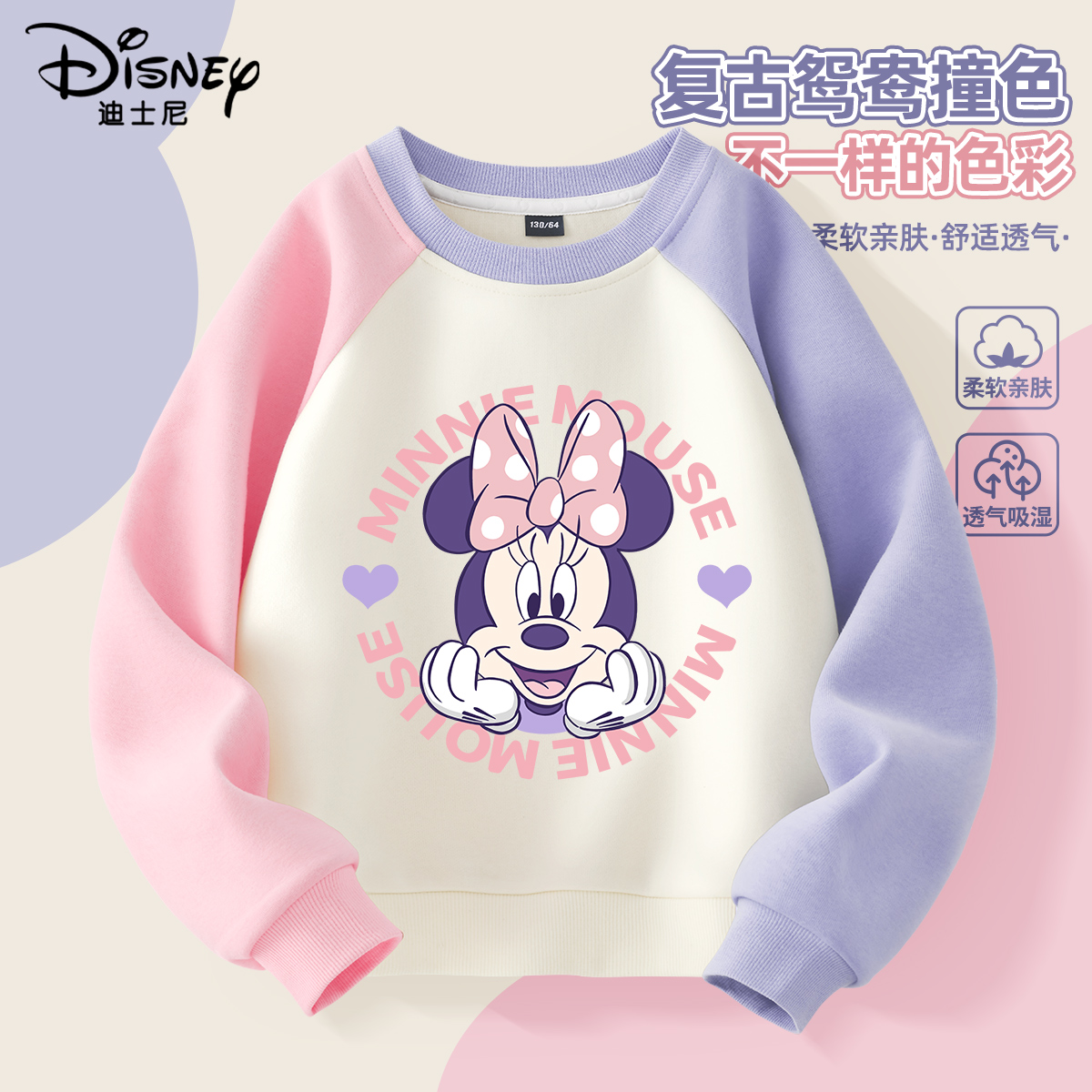 女童春装 迪士尼儿童卫衣春秋2025新款 长袖 上衣鸳鸯袖 洋气时髦春季