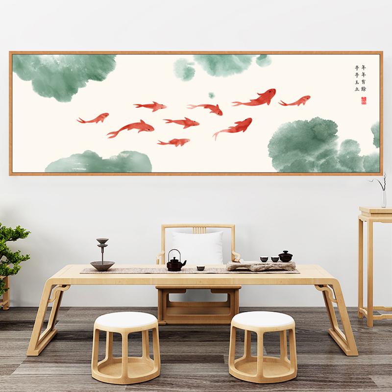 贴画墙贴新中式 饰卧室床头背景墙横幅自粘壁画贴纸 荷花客厅沙发装