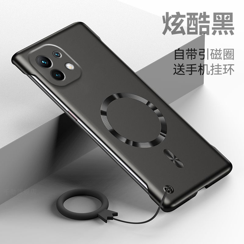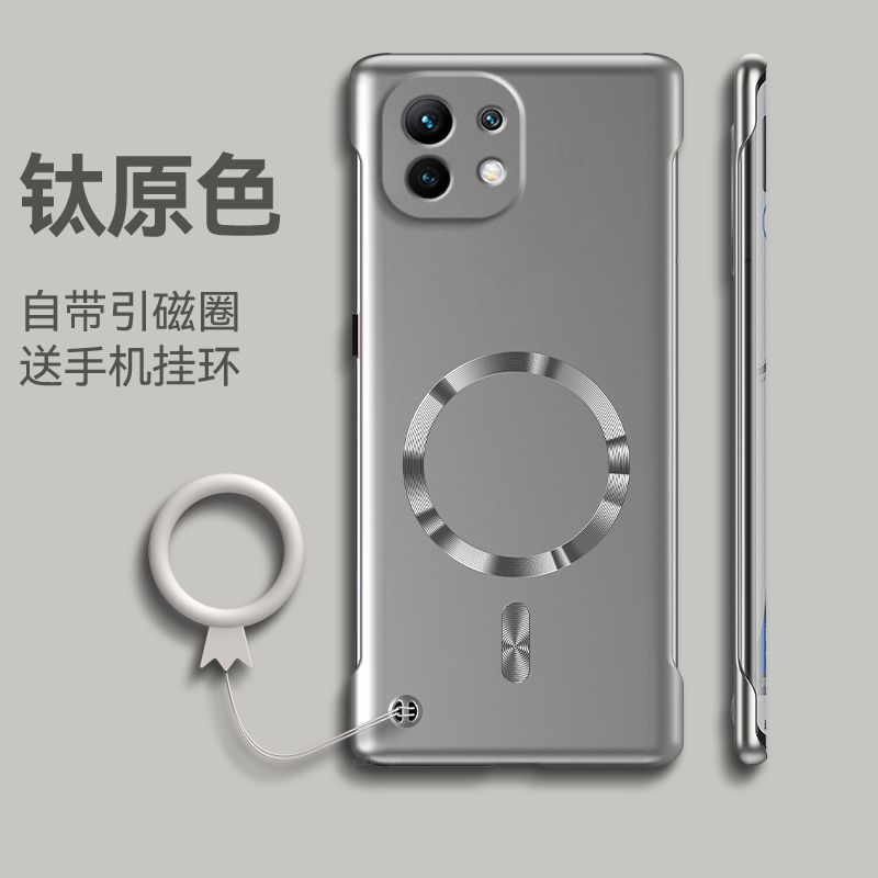 适用小米11手机壳11pro超薄保护套xiaomi新款 磁吸无边框硬壳MIUI带挂环简约半包边外壳 11ultra金属漆11青春版