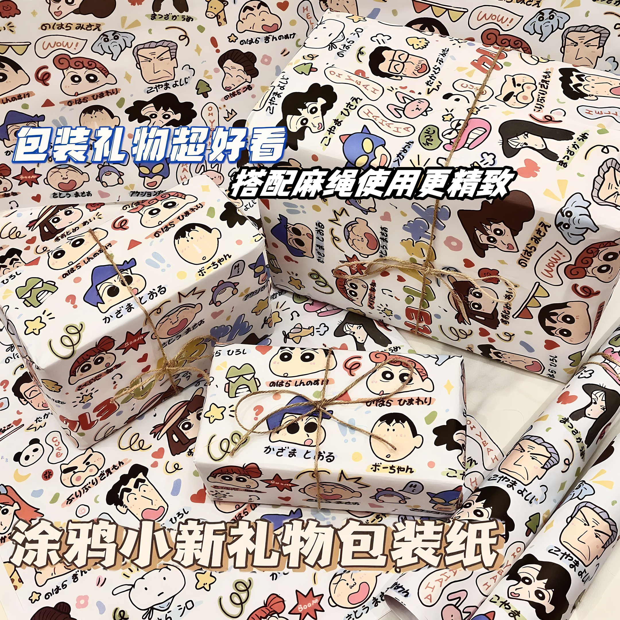 创意高颜值可爱卡通礼物包装 饰打包纸大尺寸吉伊卡哇蜡笔小新生日花束礼物礼品礼盒手工diy材料 纸精美高级装
