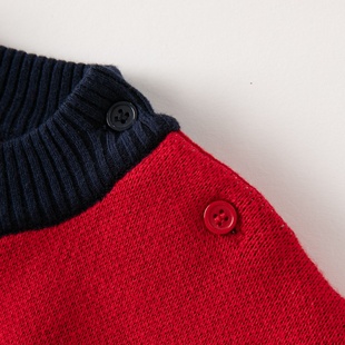 撞色拼接毛衣女秋冬修身 复古设计感套头插肩内搭羊毛针织打底衫