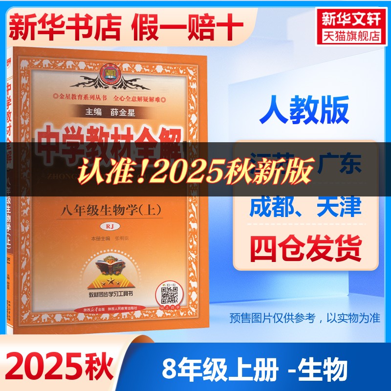 薛金星中学教材全解8年级上册生物人教版 2025秋新版 八年级初中暑假中考教材同步练习册课本预习必刷题资料辅导书 新华文轩