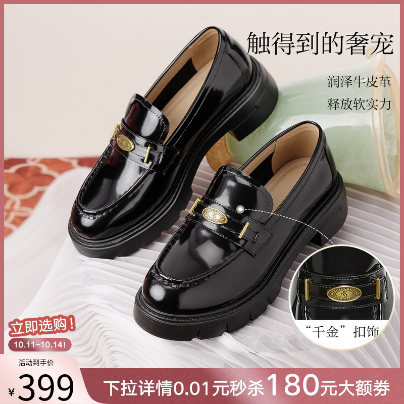 女单鞋 牛皮英伦乐福鞋 百思图25秋商场新款 UUJ01CA5 暗夜徽章