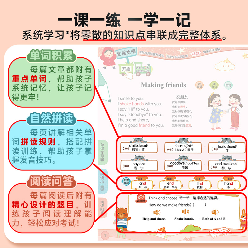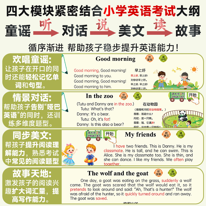 贝灵2025年小学生1 6年级英语阅读训练手指点读发声书晨读美文打卡一本英语故事情景对话童谣同步英语范文作文听力课外拼读教辅