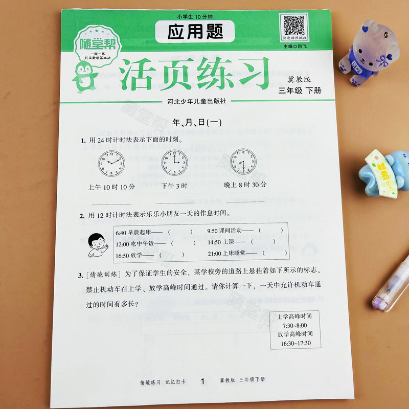 三年级下册数学口算题卡竖式 冀教版 计算应用题活页练习专项训练课本同步练习册每天10分钟一课一练不进位乘法小数加减法 随堂帮