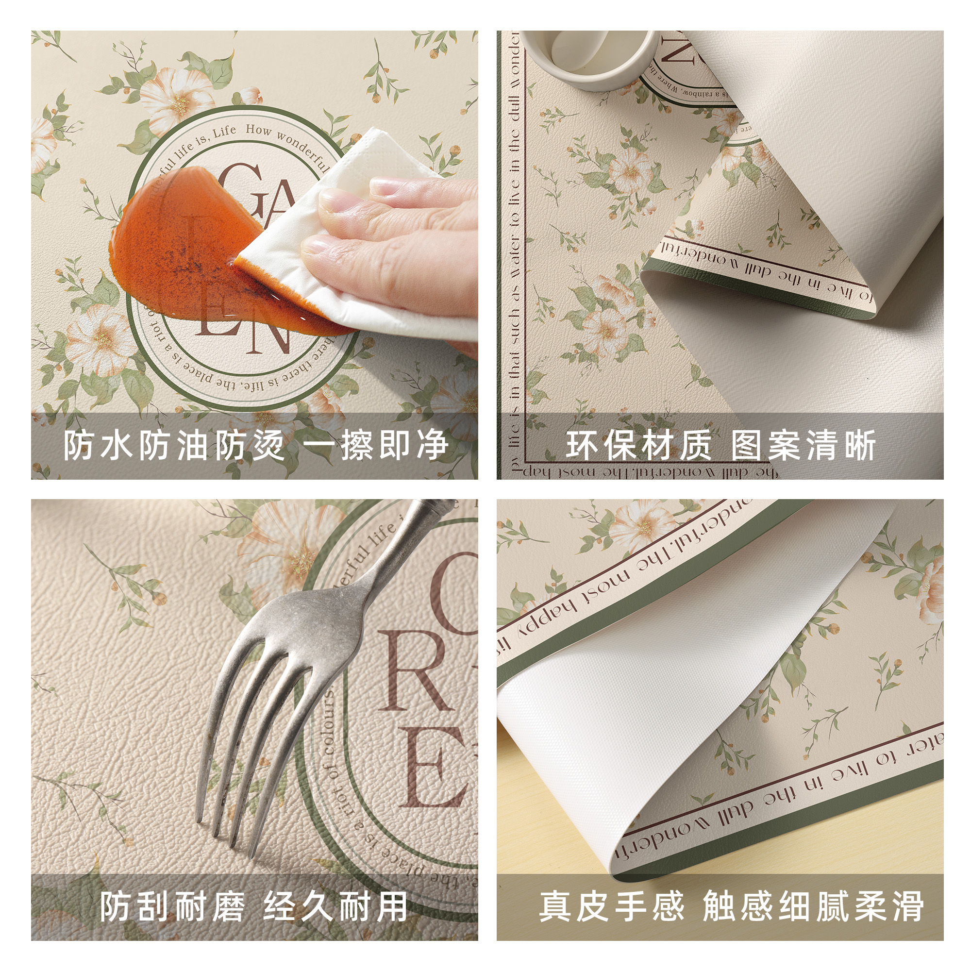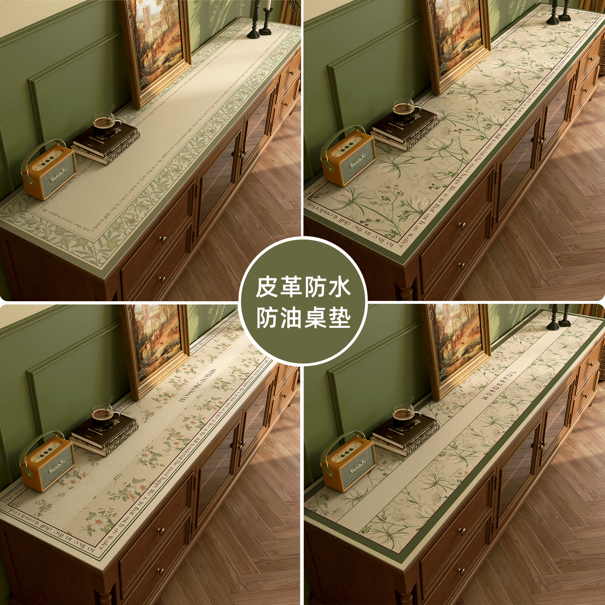 轻奢高级感中古风桌布餐桌垫防水防油防烫皮革法式 复古免洗茶几垫