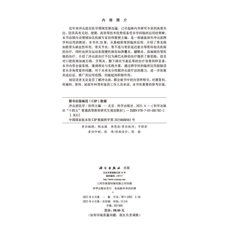 内容包含股骨头缺血性坏死 孙伟 骨关节炎 骨不连与骨折延迟愈合等 社 冲击波医学 科学出版 十四五普通高等教育研究生规划教材