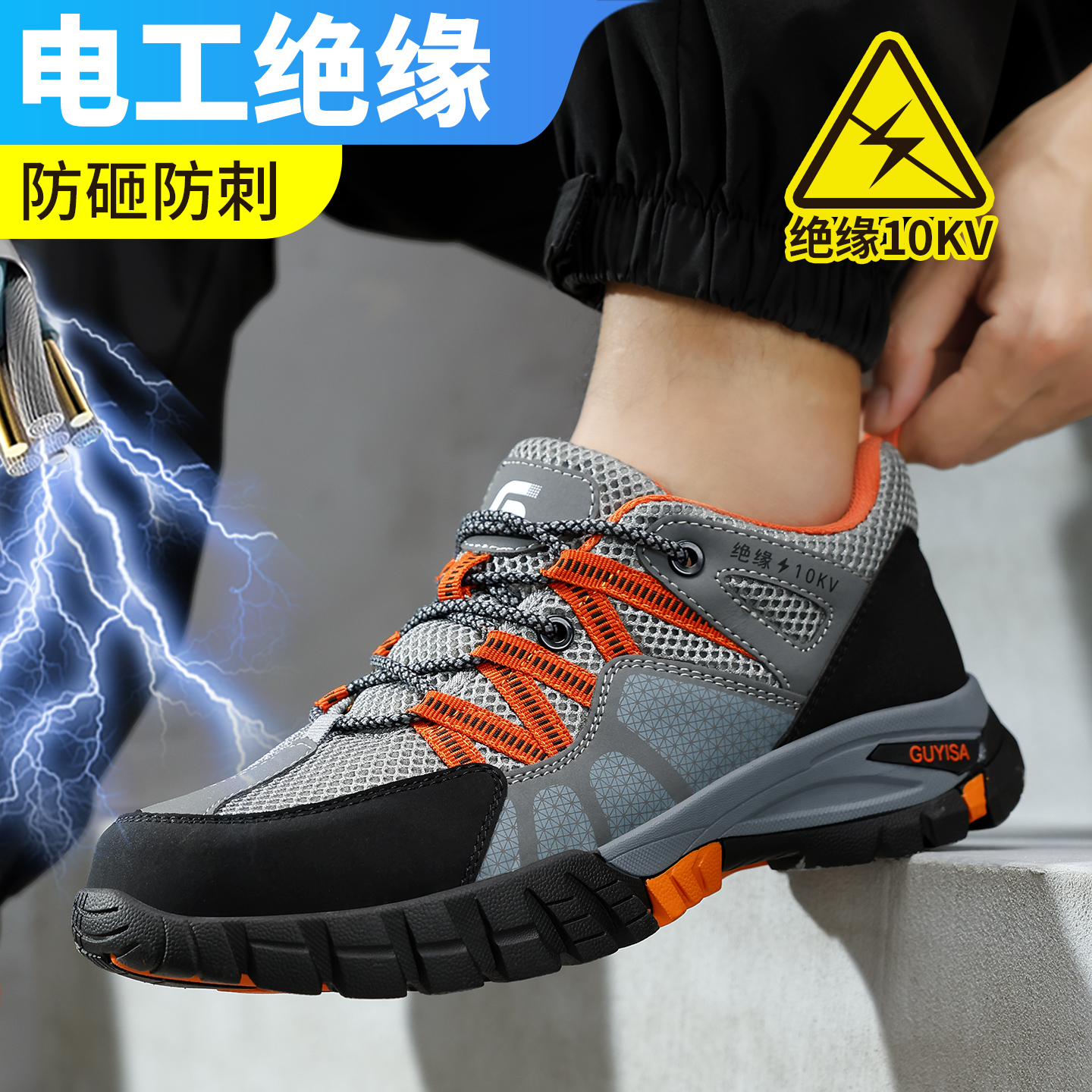 透气安全工作钢头带钢板 士电工绝缘10kv防砸防刺穿夏季 劳保鞋 男款