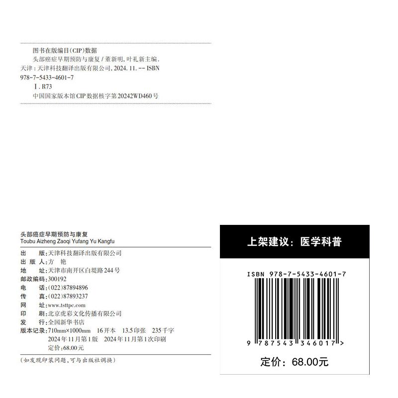 叶礼新 董新明 主编 天津科技翻译出版 9787543346017 头部癌症早期预防与康复 公司 平装