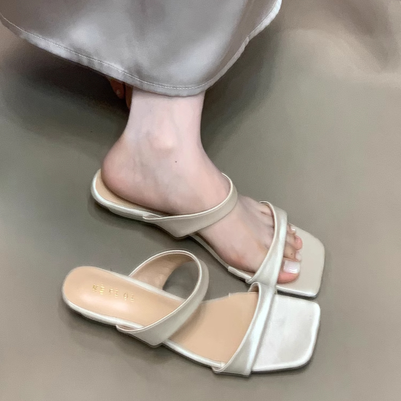 通勤拖鞋 坡跟露趾凉拖鞋 方头一字凉鞋 配裙子时尚 女夏外穿2025新款
