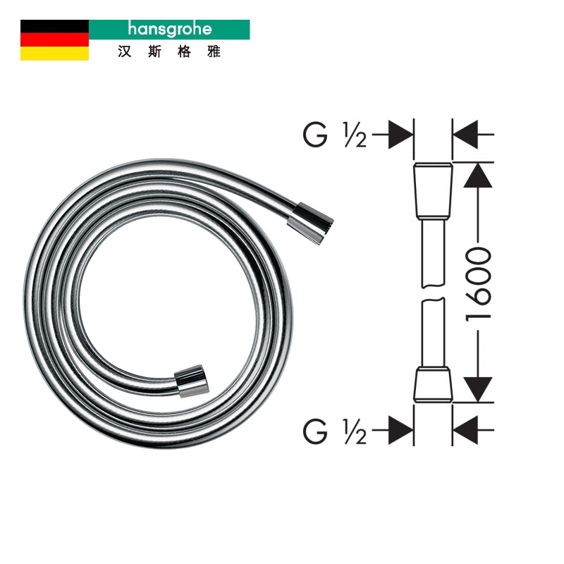 汉斯格雅hansgrohe花洒软管易飞丝1.6米淋浴连接花洒配件28276007