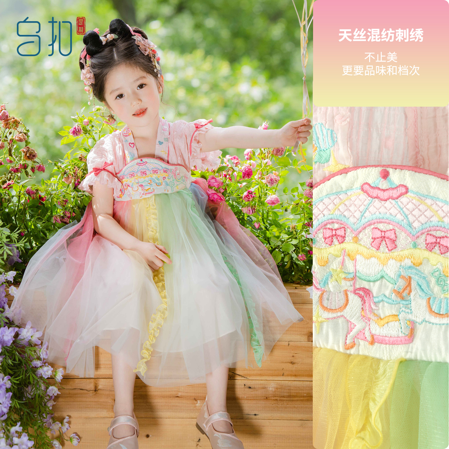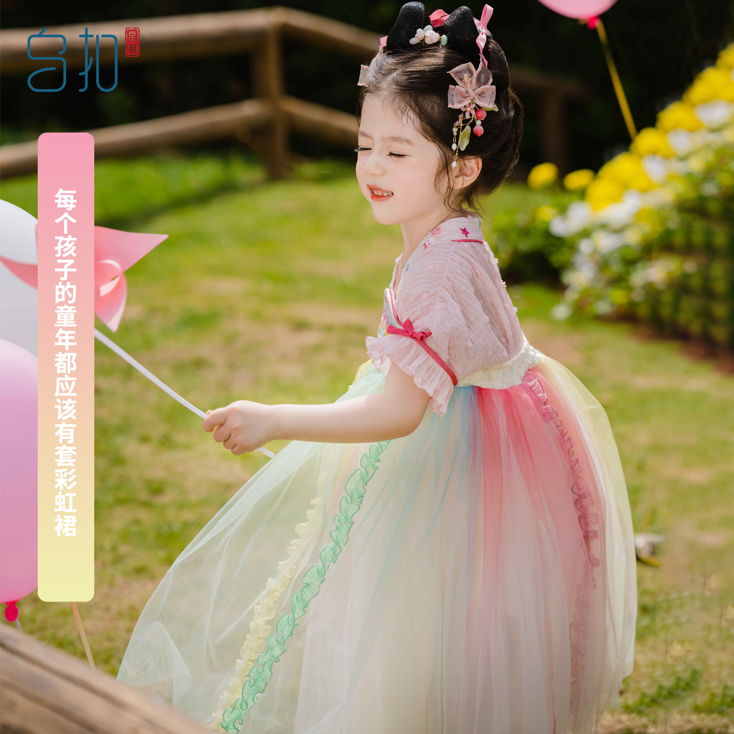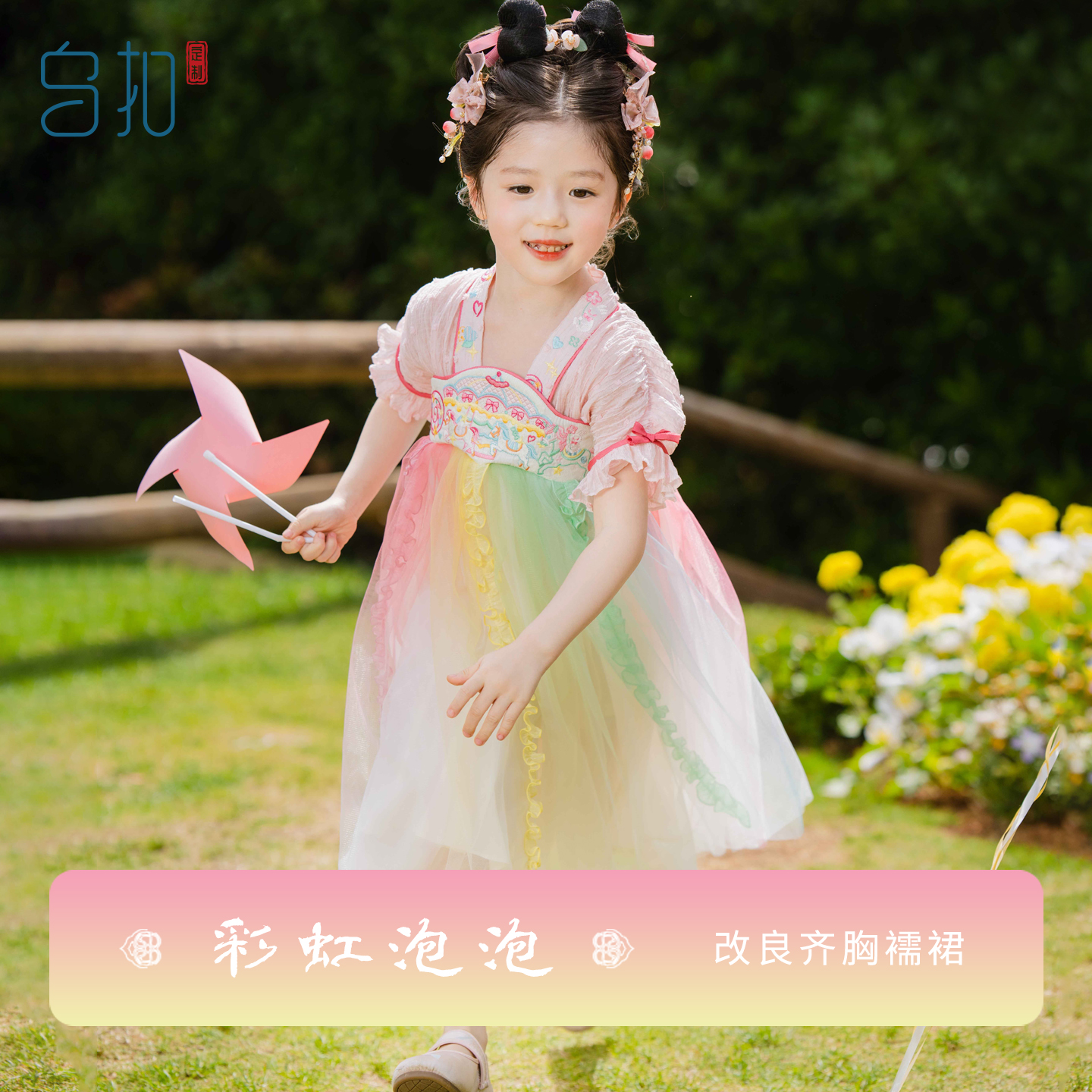 超仙襦裙古风连衣裙夏装 乌扣.彩虹泡泡 儿童短袖 薄款 汉服女童夏季