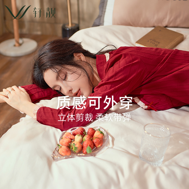 本命年新娘结婚家居服套装 新款 女 秋天纯棉长袖 红色睡衣女士春秋季