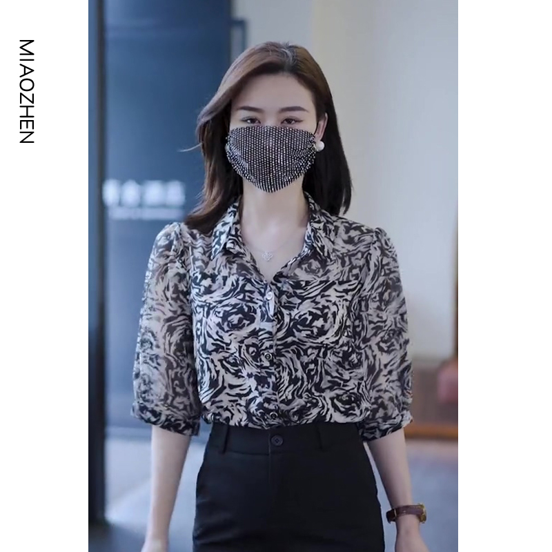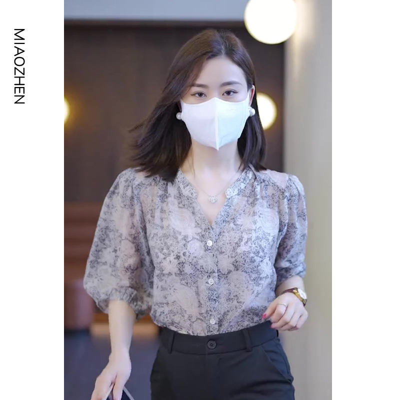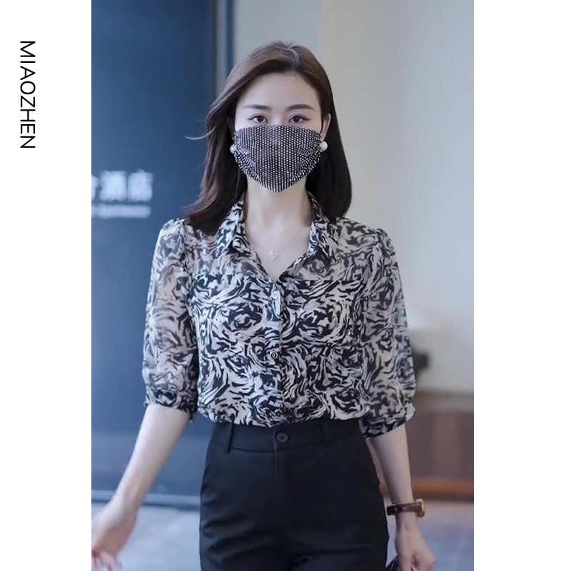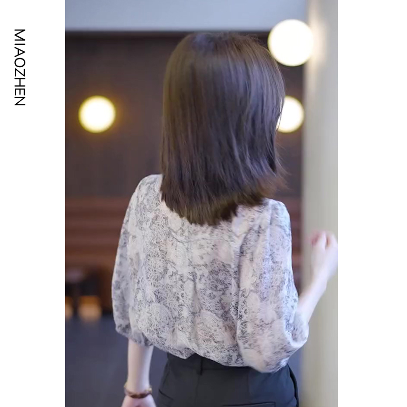 洋气漂亮小衫 女2025新款 减龄夏季 韩版 上衣 五分袖 宽松时尚 雪纺衬衫