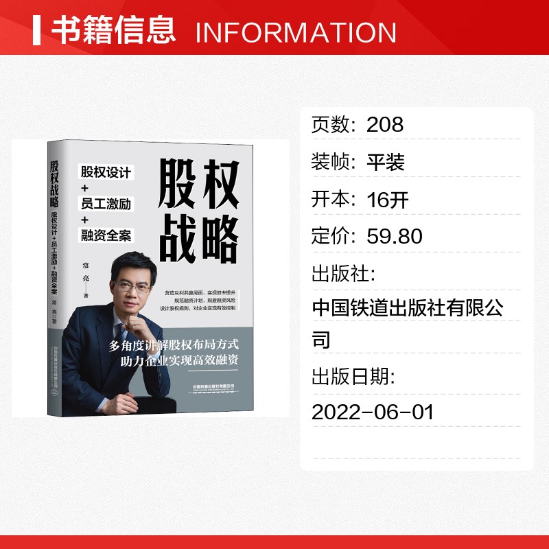 图书籍 社有限公司 融资全案 企业管理经管 励志 著 员工激励 常亮 中国铁道出版 股权战略 新华书店正版 股权设计
